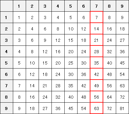 九九は「9×9のマス目の表」です。