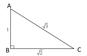 \(BC=\displaystyle\sqrt{1^2+1^2} =\sqrt2 \)
