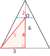 半球の中心Oと円錐の底面の円周との距離が半球の半径(=5)になる点です。