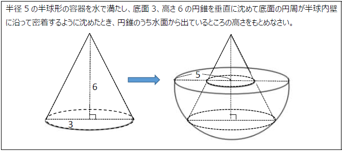 ここで重要なのは、円錐の底面が半球の内壁に密着しているので、